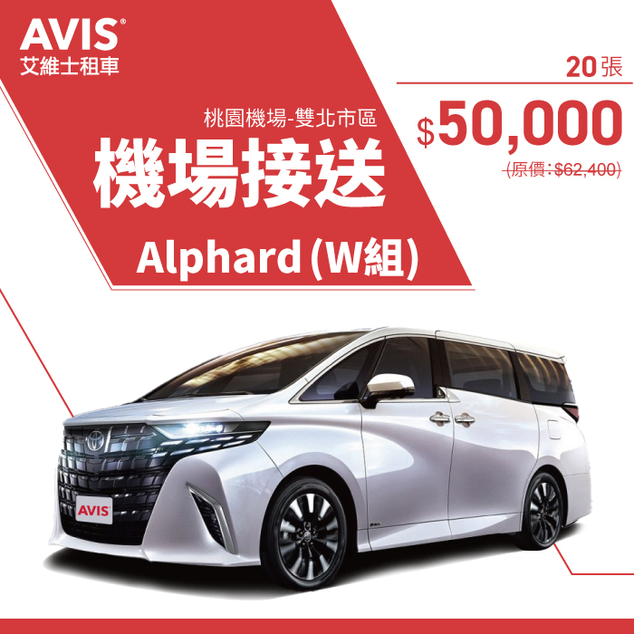 AVIS 機場接送券 W組Alphard 20張 (桃園機場-雙北市區)
